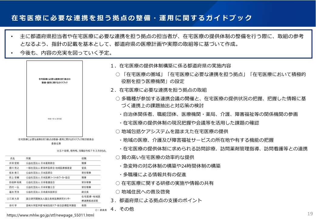 〇厚生労働省 在宅医療に必要な連携を担う拠点の整備・運用に関するガイドブック