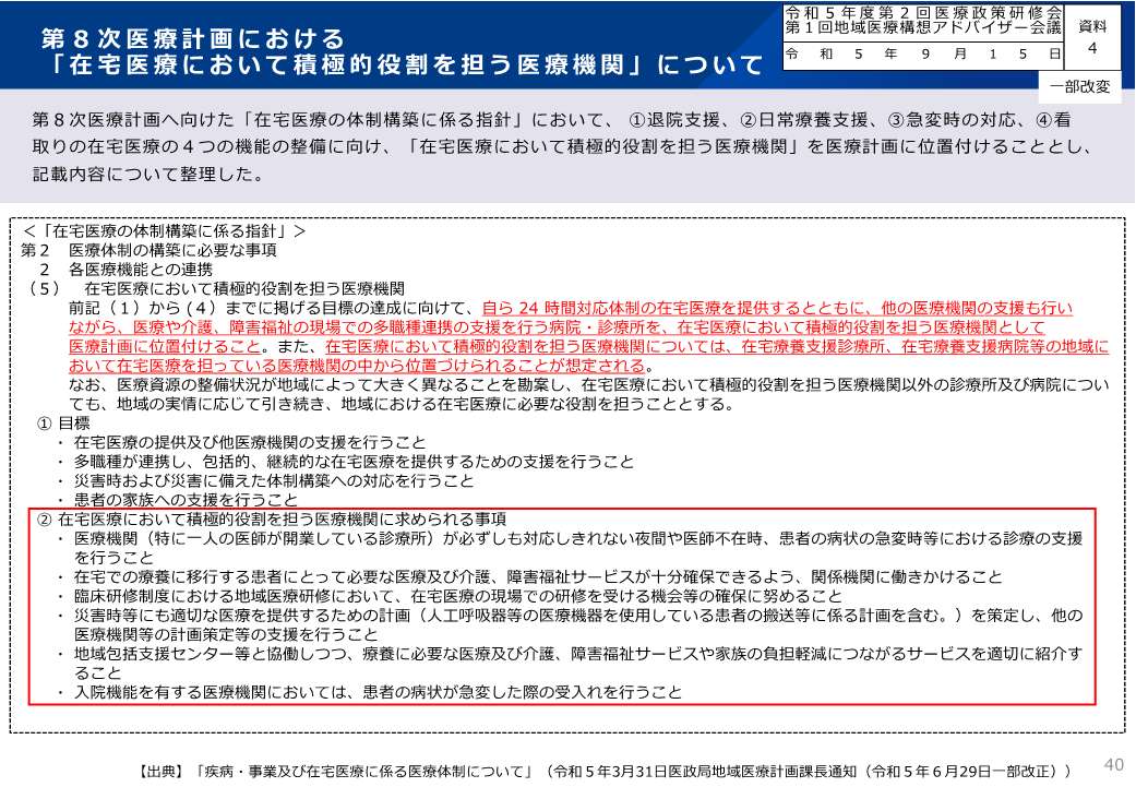 〇厚生労働省 在宅医療の提供体制の整備に関する検討等について